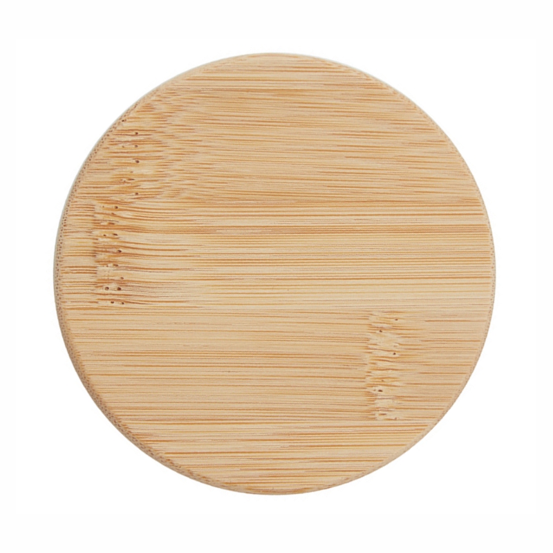 Destapador abrebotellas circular fabricado en bambú y metal. Dimensiones: 6 cm.