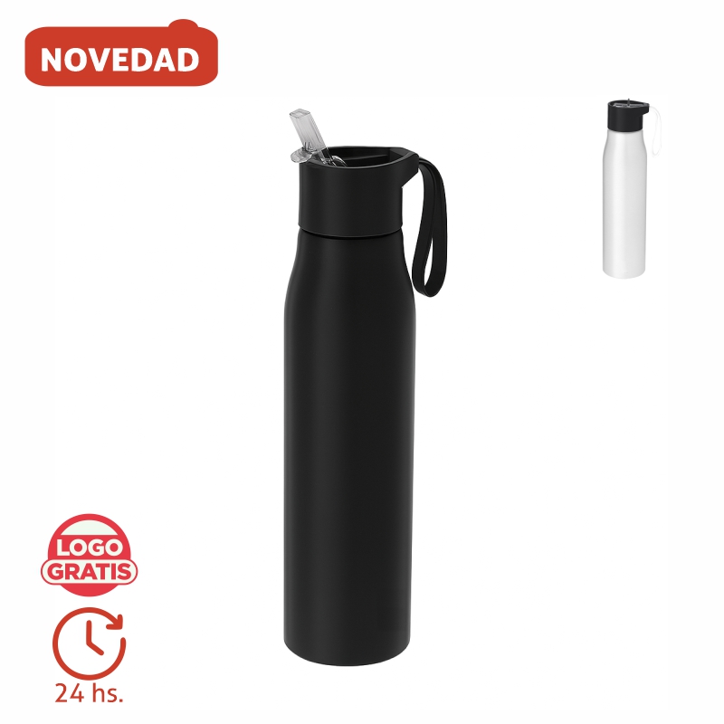 BOTELLA JIMMY, botella aluminio reciclado 700 ml, botella ecológica libre de BPA, botella con pajita y correa silicona, botella deportiva ligera, botella reutilizable aluminio mate, botella sostenible certificada GRS, botella ecofriendly para gimnasio, botella para oficina y viajes, botella aluminio reciclado ecológica, botella reutilizable ligera resistente