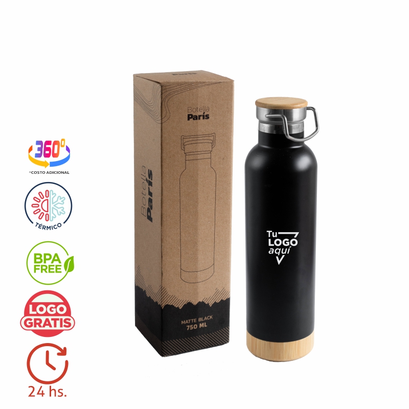 BOTELLA PARIS 500 ML, botella Paris, botella térmica, botella reutilizable, botella de acero inoxidable, botella 750 ml, botella doble pared, botella con tapa de bamboo, botella con base de bamboo, botella ecológica, botella libre de BPA, botella aprobada por INAL, botella premium, botella con gancho, botella con diseño elegante, botella sustentable, botella con caja de regalo, botella con bolsa interna, botella para personalizar, botella corporativa, regalo empresarial, merchandising ecológico, botella para branding, botella para bebidas frías, botella para bebidas calientes, botella con estilo natural, botella con rosca de bamboo, botella inoxidable 304, botella térmica personalizada, botella para empresas