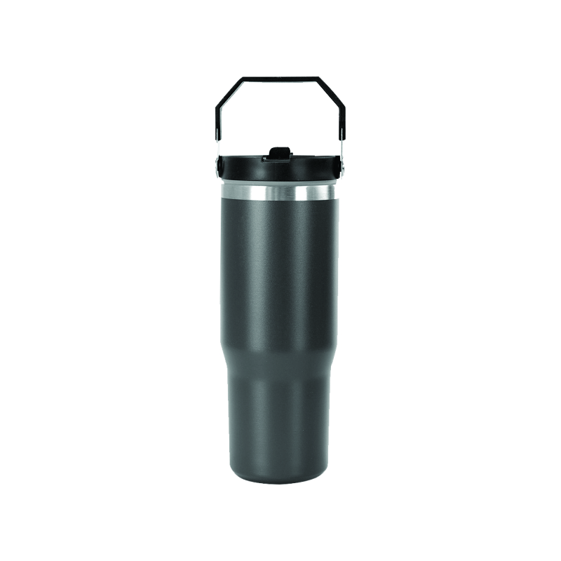 Tumbler de doble pared con capacidad 887ml. Está confeccionado en acero inoxidable 304 en su interior, y su exterior en acero inoxidable 201 con pintura en polvo. Tapa realizada en ABS y PP + Sorbete. El producto viene en una bolsa de PLA 100% compostable dentro de una caja de cartón. Ideal para uso diario. Dimensiones: 27,5 x 10 cm.