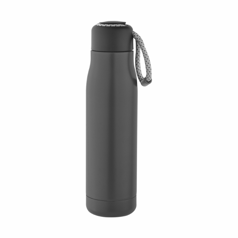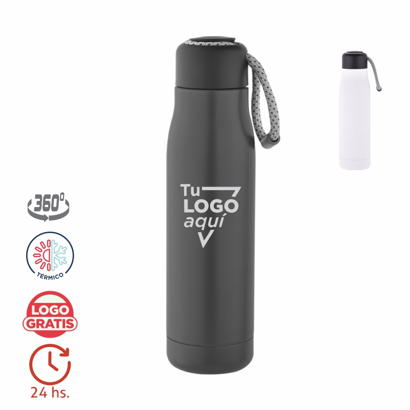 Mantiene las bebidas calientes hasta 12 horas y frías hasta 24 horas. Incorpora tapa plástica de polipropileno con anillo de silicona, asegurando cierre hermético y sin derrames. Incluye tira de transporte color gris de 12 cm, práctica para llevar en la mano, mochila o bolso.