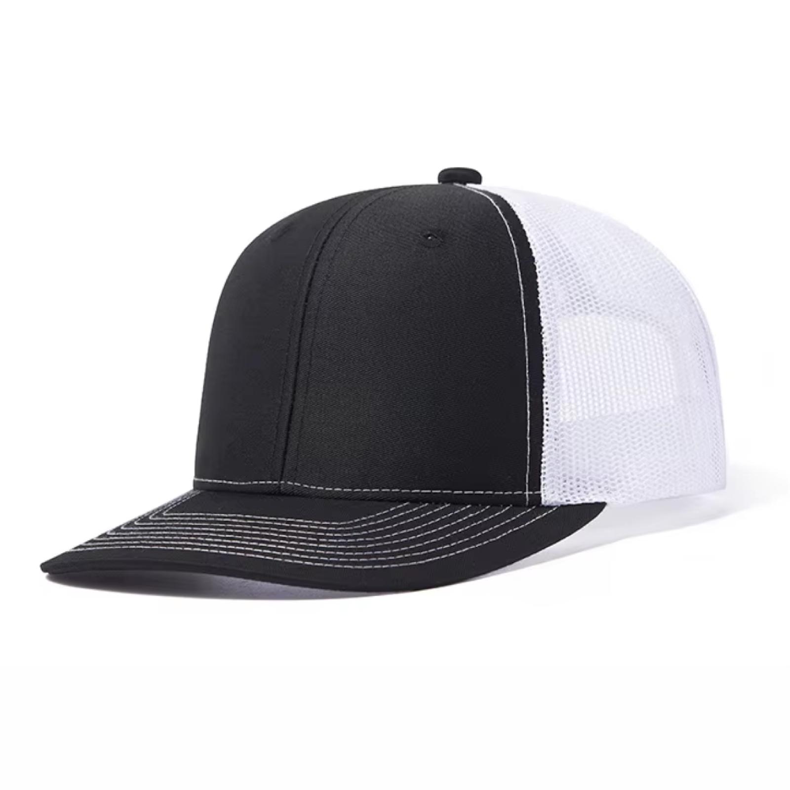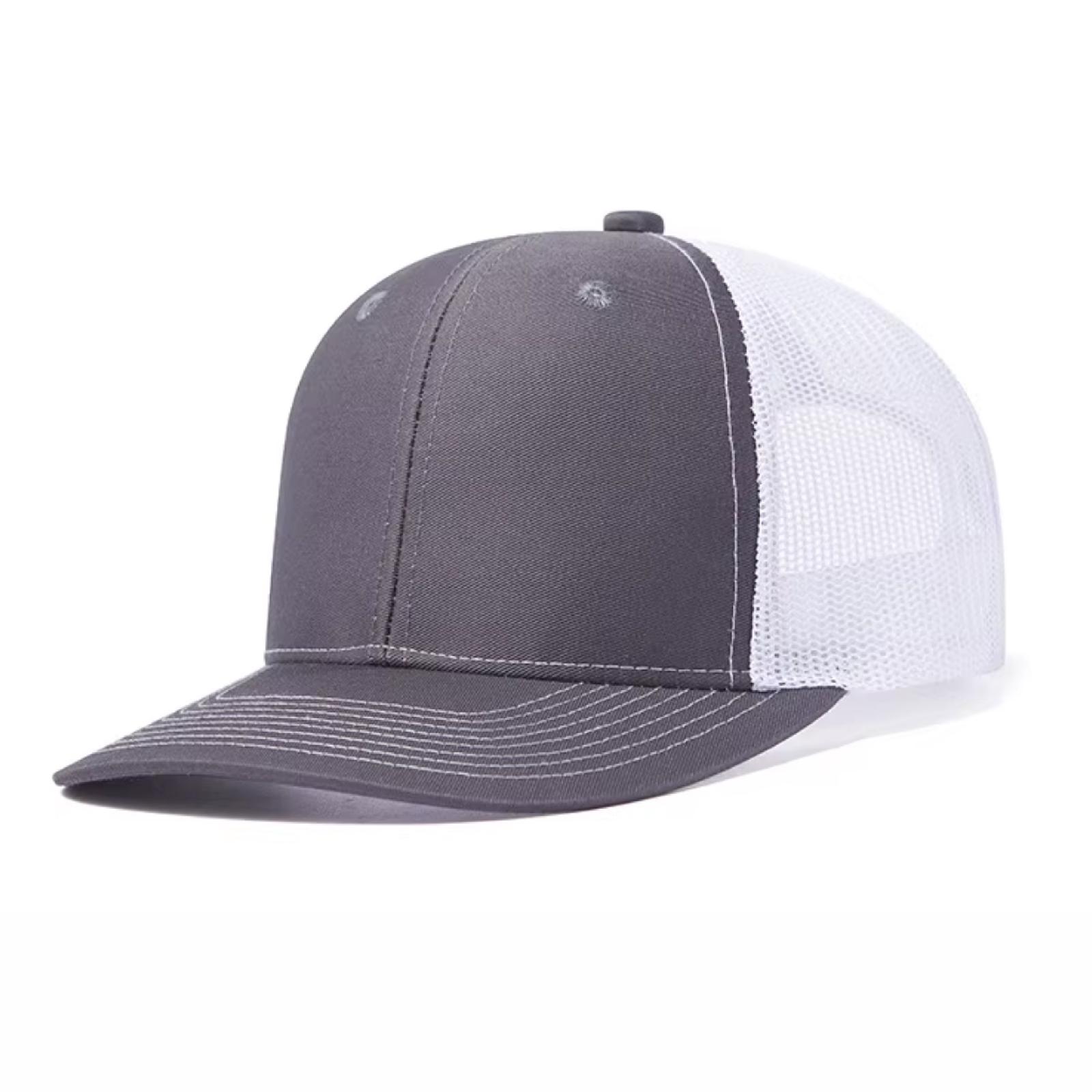 Gorro de 6 gajos con visera. El dorso del del gorro cuenta con diseño de tela de red de color kaki y ajuste con broche. Posee un sticker metalizado en la visera.